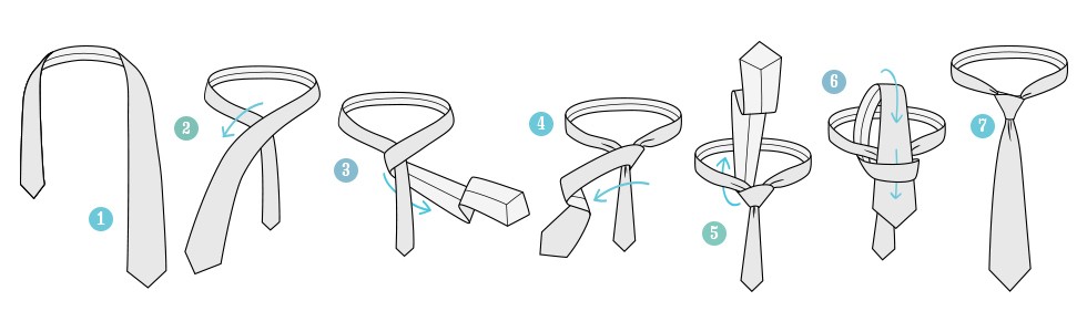 우선 넥타이의 굵은 부분과 얇은 부분을 양손으로 같이 들어서 목에 건 후, 굵은 부분은 오른쪽에, 얇은 부분은 왼쪽으로 합니다. 왼쪽 부분을 오른쪽 부분보다 조금 위로 하고 넥타이를 매기를 시작합니다. 그리고 굵은 부분을 앞으로 하다가, 뒤로 가고, 또 한바퀴 돌립니다. 굵은 부분을 앞으로 하다가 뒤로 하신 다음 굵은 부분은 얇은 부분과 수직된 상태에서 또 한바퀴 돌립니다. 또 한바퀴를 돌린다음 넥타이 부분에는 구멍이 생기는데, 그 구멍에 손가락 두개를 넣으신다음, 두꺼운 부분을 바로 손가락 구멍에 들어가는게 아니라, 안으로 먼저 넣고 다시 손가락으로 만든 구멍안에 넣습니다.