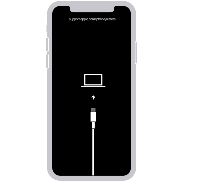 아이폰은 PC와 연결하는 와중에서 아이폰을 무조건 끈 후 전원 버튼을 길게 누르면 복구 모드로 아래와 같이 나타나게 됩니다.