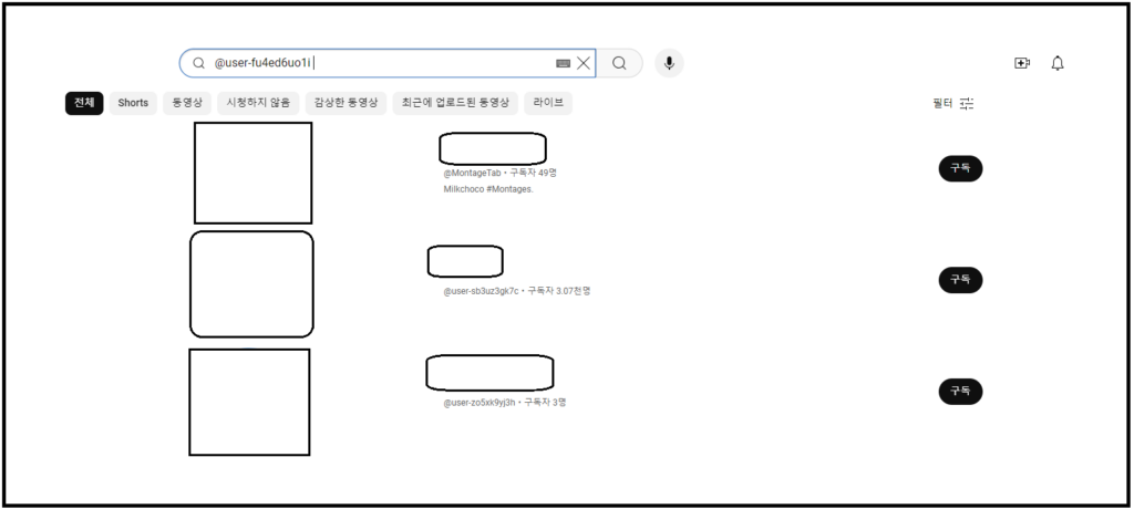 4. 채널을 원복한 후, 유튜브 검색 창에 핸들 검색해보기