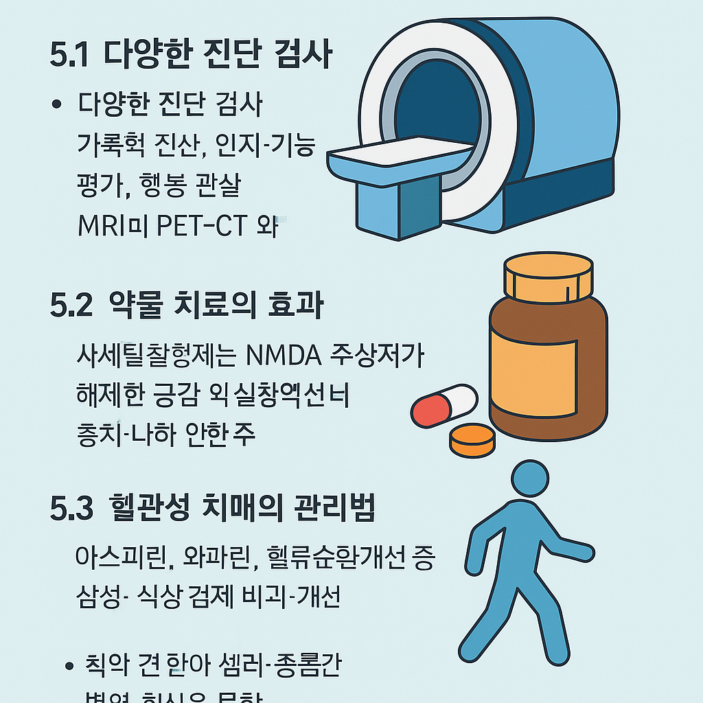 혈관성 치매는 뇌혈관 질환의 재발 방지가 핵심입니다. 이를 위해 아스피린, 와파린, 혈류순환개선제 등을 사용하며, 식습관 개선과 운동을 병행하는 것이 좋습니다. 치료와 관리에 환자 본인의 적극적인 참여가 중요합니다.