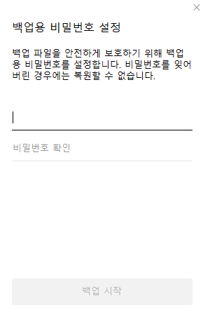 백업이 완료된 후 클라우드에 업로드가 되었습니다. 확인을 누르신 후, 모바일이나 다른 PC에서 대화를 복원하시면 됩니다.