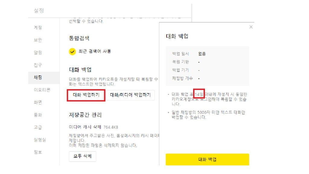 14일내에 텍스트로 대화한 내용만 복구하실 수 있다는 점 꼭 주의하시길 바랍니다.