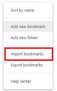 오른쪽 점 세개를 클릭 후 북마크 가져오기를 클릭 합니다.