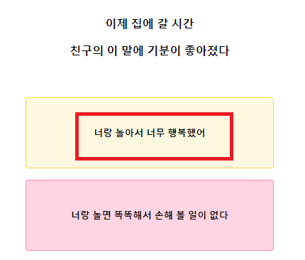 7. 이제 집에 갈 시간, 친구의 이 말에 기분이 좋아졌다.