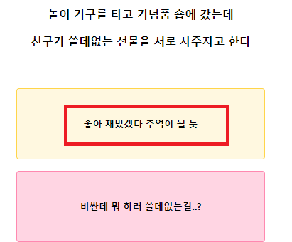 3. 놀이 기구를 타고 기념품 숍에 갔는데 , 친구가 쓸데없는 선물을 서로 사주자고 한다?