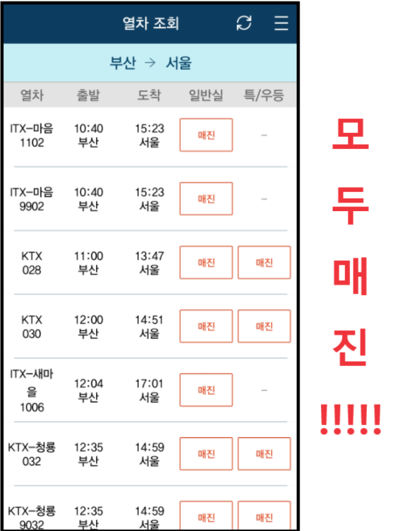 이상 ktx 티켓이 매진 되어 있거나, 좌석이 없을 경우 꿀팁을 공유 드렸습니다.