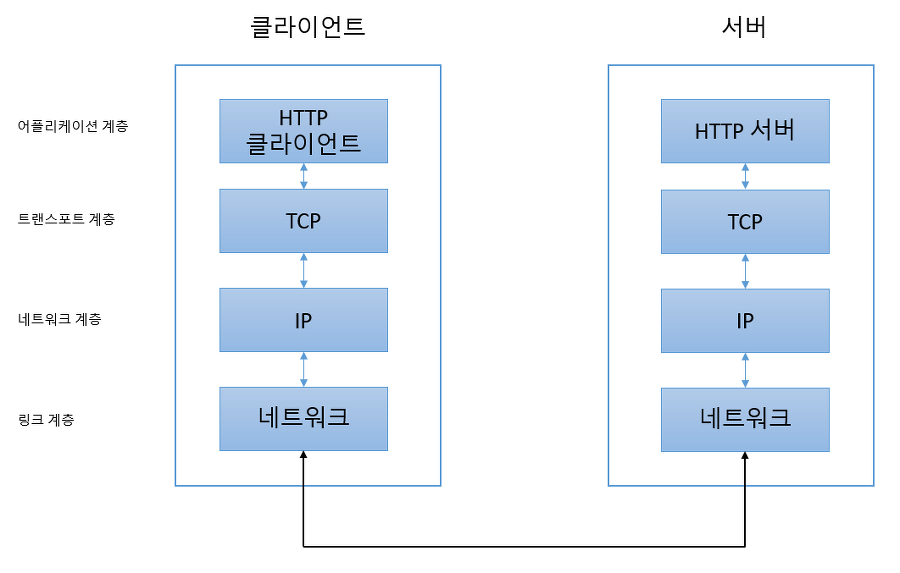 Layer 4 부터 사실 상 물리적이라기 보단 , 우리의 눈에 안 보이는 소프트웨어 쪽으로 보셔도 될 것 같습니다. 즉 TCP / IP 프로토콜 (협의)의 정의에 의해, 아래와 같이 서버와 클라이언트 사이에서 데이터 전송이 진행 됩니다.